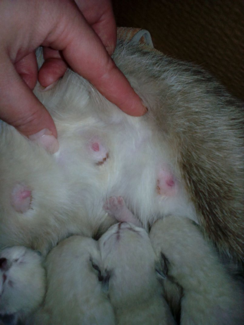 - Травмирование молочных желез или самих сосков в период кормления котят.