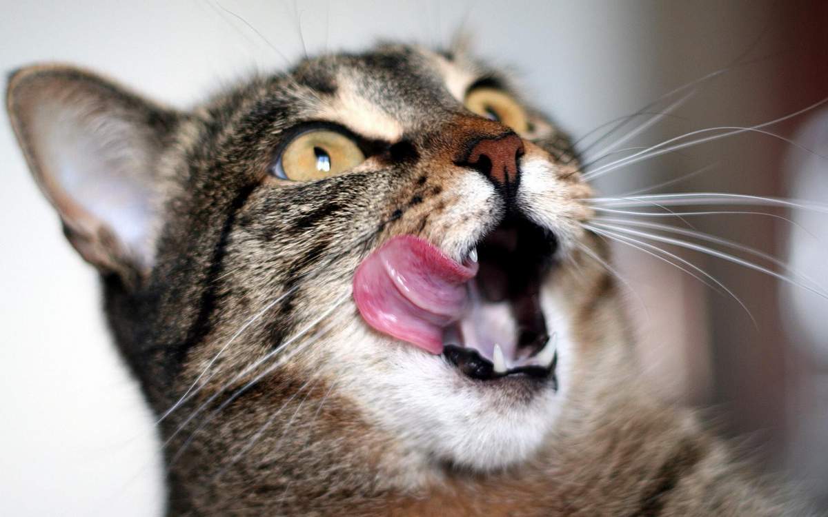 - Положите кота на бок и немного нажмите чистым указательным пальцем на корень языка.