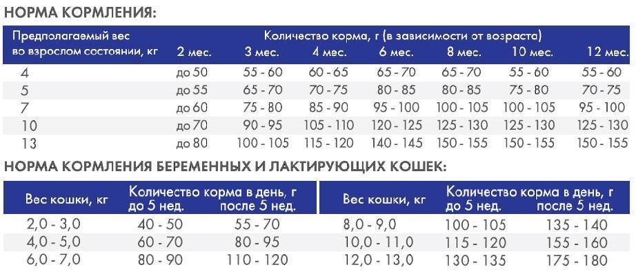Заводчики особо обращают внимание на натуральное питание кошки. Таблица 2