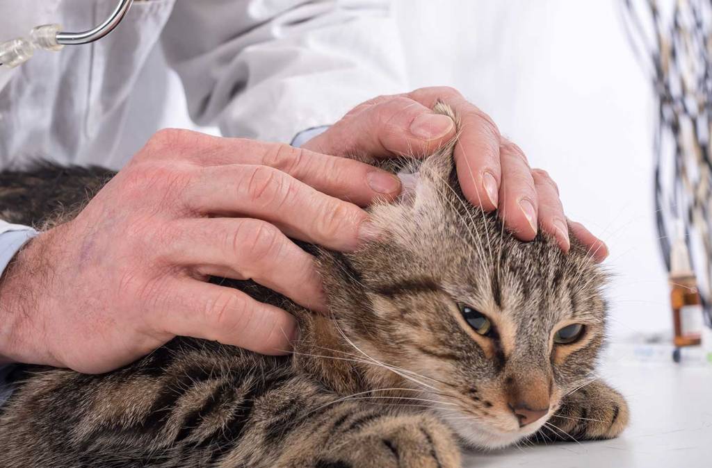 При обнаружении шишки за ухом у кошки не стоит медлить. Желательно сразу же показать ее ветеринару. Для определения характера припухлости врач проводит визуальный осмотр и проводит опрос хозяина животного. Главные вопросы, которые интересуют врача: