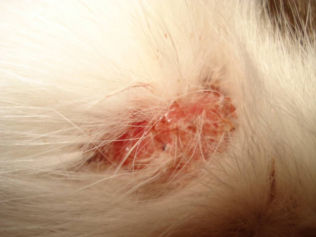 - на участках кожи под ними полностью отсутствует шерсть, после выздоровления она уже не восстановится;