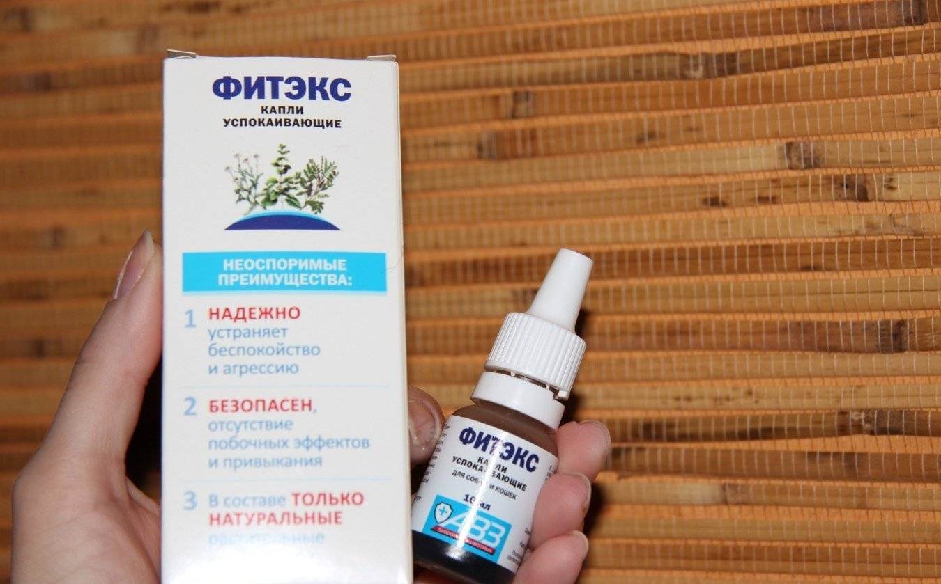 - Капли «Фитэкс». Отличное средство не только для успокоения животного во время стресса, но и от течки. В составе этих капель присутствуют различные травы, предназначенные для успокоения домашнего любимца и снятия стресса.