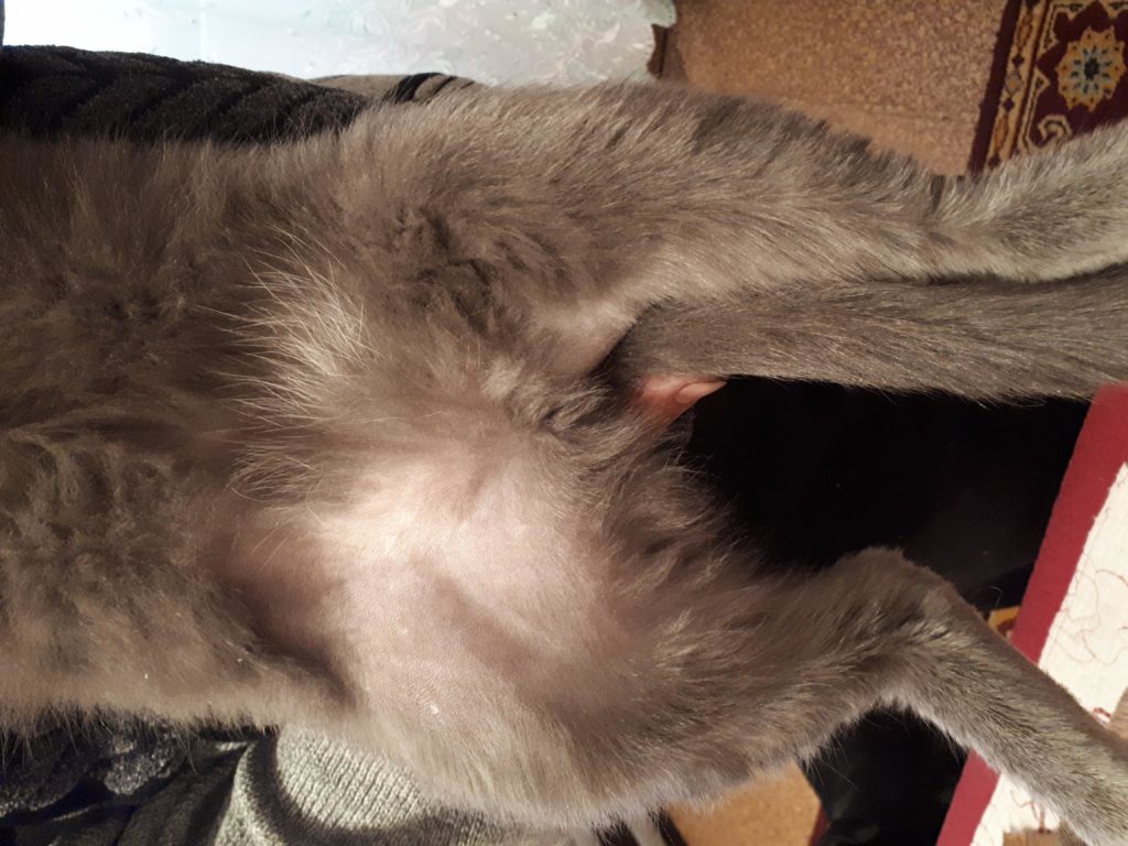 Также прикинуть, насколько большую область затронуло пятнышко облысения. Имеется ли граница лысого участка, или же шубка животного просто поредела? Необходимо исключить инфекционное и грибковое поражение кожного покрова.