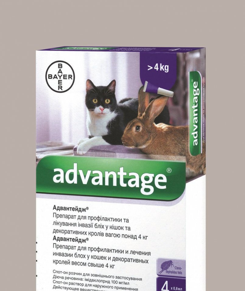 Крупного кота, чья масса превышает 4 кг, необходимо обрабатывать Адвантейджем, специально предназначенным для этой категории кошек.