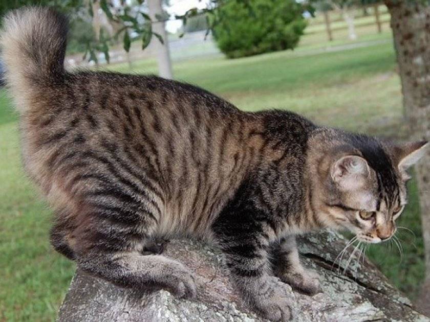 Короткий хвост. Несмотря на его длину 2,5-10 см, позвонки сохраняют подвижность. Кончик украшен мягкой кистью. Если рассматривать фото американского бобтейла, то двух одинаковых хвостов не найти.