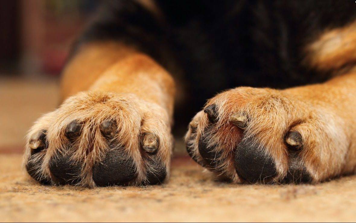 Красивые лапки пса в увеличенном виде