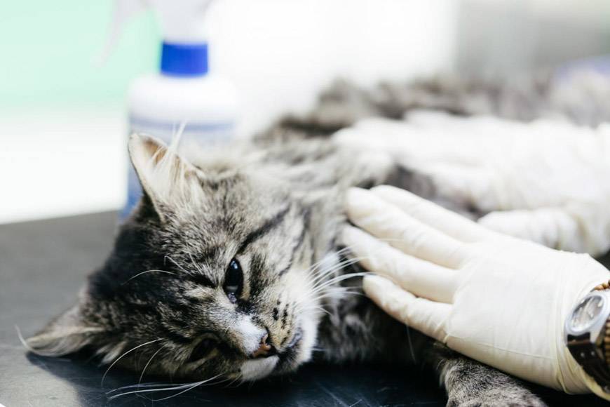 Владелец должен позаботиться о том, чтобы животное не принимало пищу и воду до визита к ветеринарному врачу, обеспечить кошке полный покой и срочно доставить в специализированную клинику.