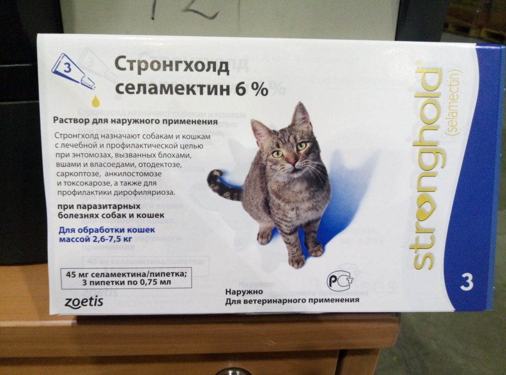 - Стронгхолд (активное вещество селамектин) — стоимость 380 руб.