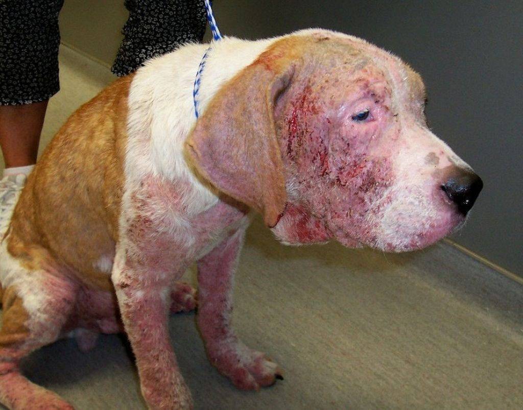 При дальнейшем прогрессировании болезни появляются новые симптомы, такие как зуд, возникновение струпьев, распространение очагов болезни по всему телу животного, залысины, на коже возникают мокнущие трещинки.