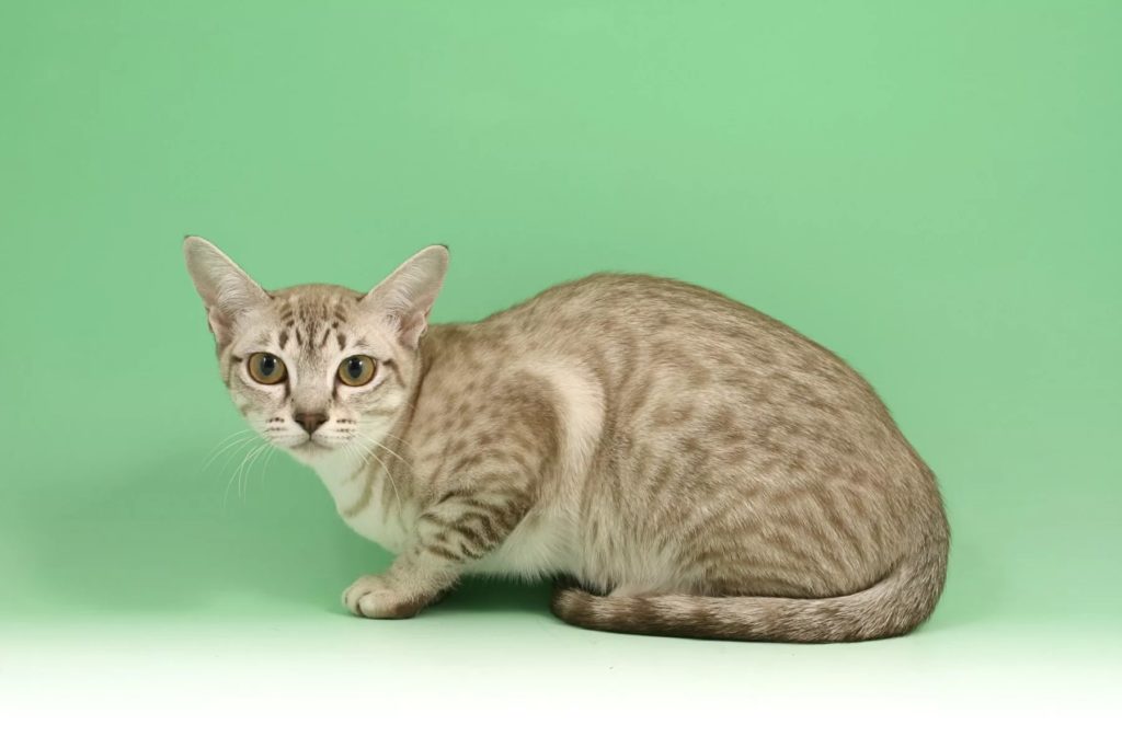 Азиатская кошка — животное среднего размера, весит от 4 до 7 кг. Коты, как правило, крупнее кошечек, черты грубее, тело массивнее. Самочки меньше и утончённы.