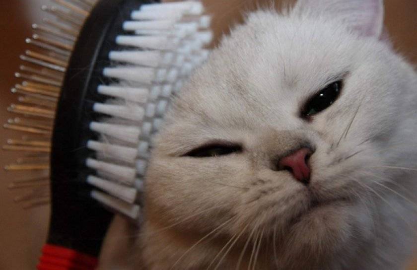 Потом желательно пройтись вдоль шубки рукой в резиновой перчатке, дабы удалить все отмершие волосинки. В промежутках между вычёсыванием можно мягким лоскутком ткани протирать шёрстку, чтобы удалить легко отделяемые отпавшие волоски.