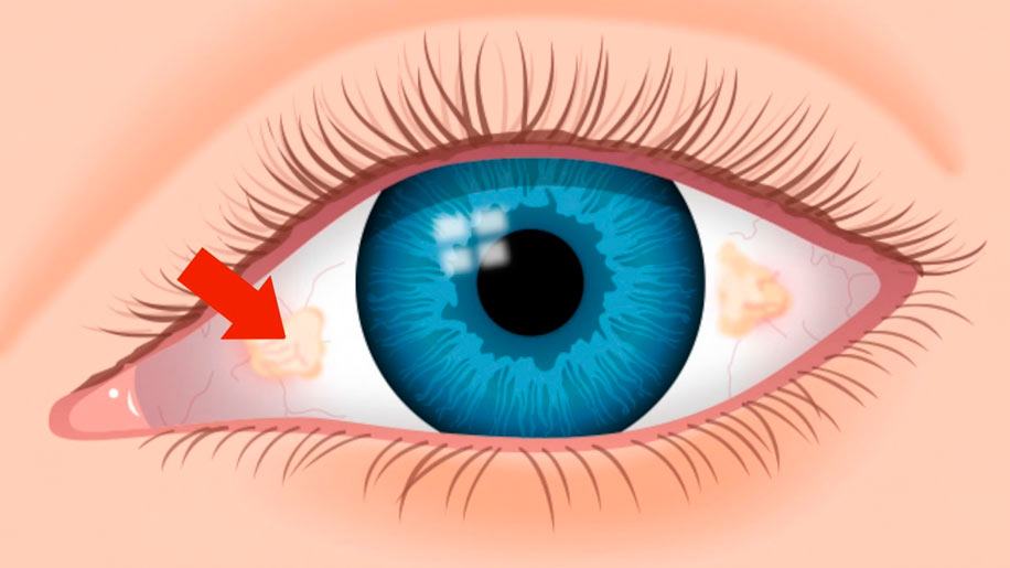 Это доброкачественное новообразование во внутреннем уголке глаза, часто путают с воспалением или пролапсом мигательной перепонки.