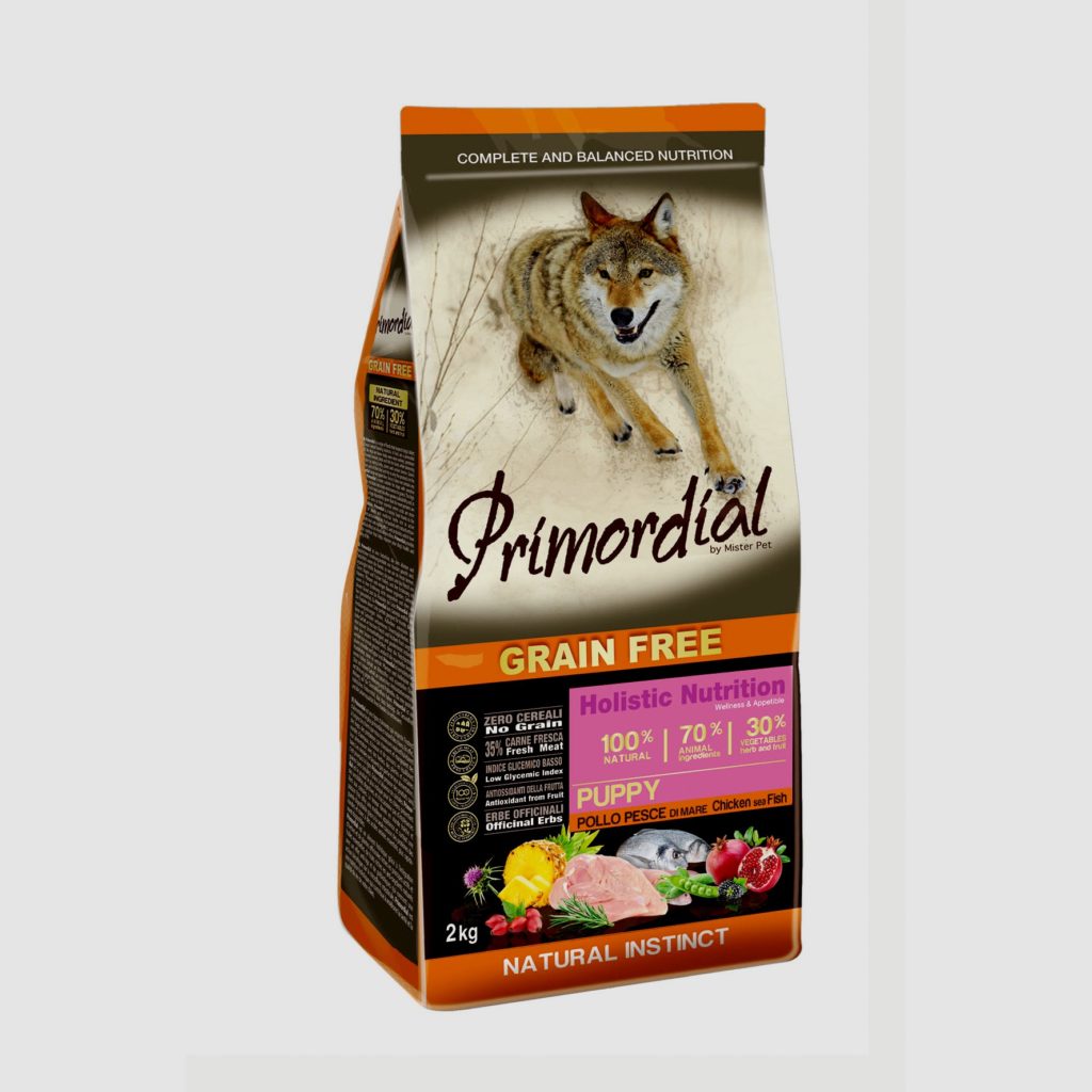 Primordial Puppy — лучший корм класса холистик для щенков. В составе отсутствуют злаки, поэтому он отлично подойдет для питомцев с аллергическими реакциями, чувствительным пищеварением. 70% занимают натуральные мясные ингредиенты.