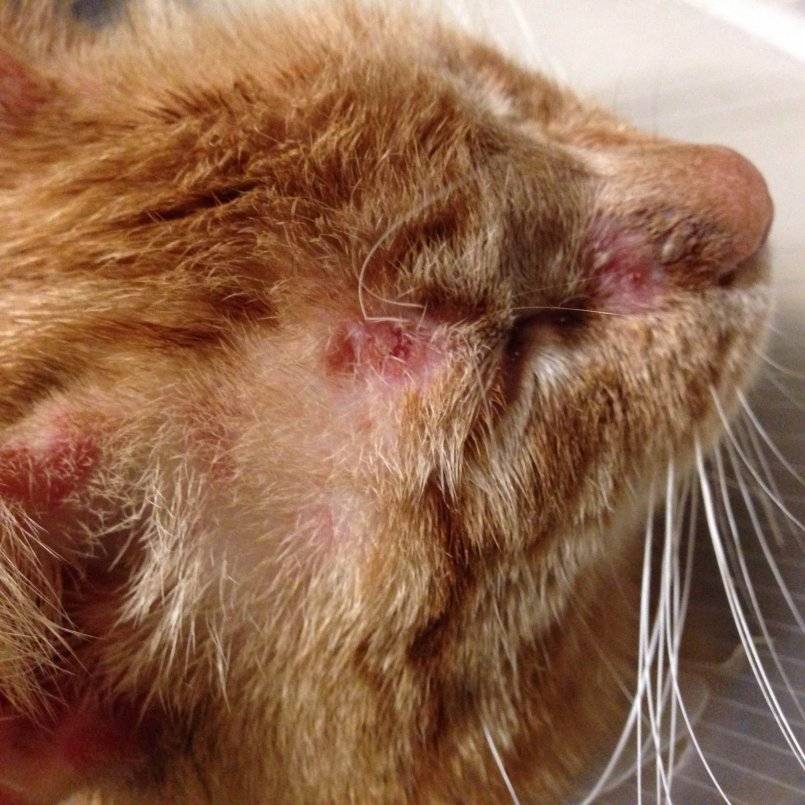 Наиболее часто ветеринарные врачи сталкиваются с пищевой аллергией. Такой вид дерматита характеризуется покраснением, отечностью кожных покровов. В тяжелых случаях у домашней кошки может развиваться опасный для жизни отек Квинке.