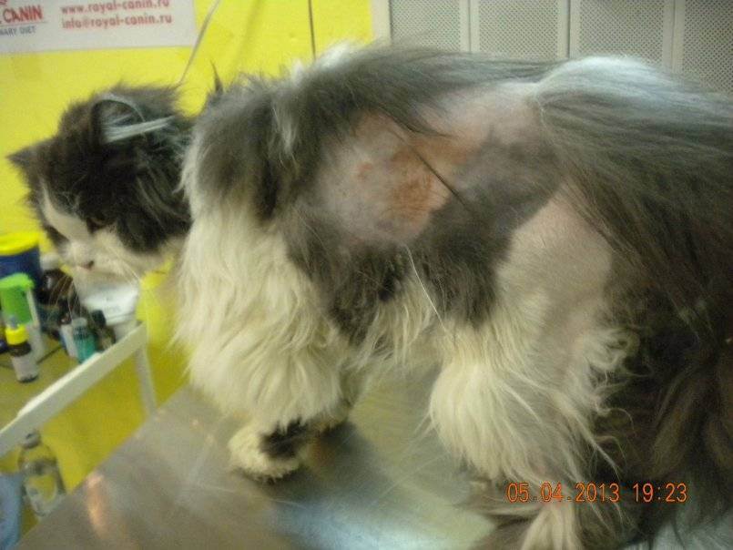 Нужно обследовать кошку на наличие ран и абсцессов. Поражённые участки необходимо обрабатывать инсектицидным кремом и при этом соблюдать регулярность до полного заживления ран (образования и отпадания корочек).
