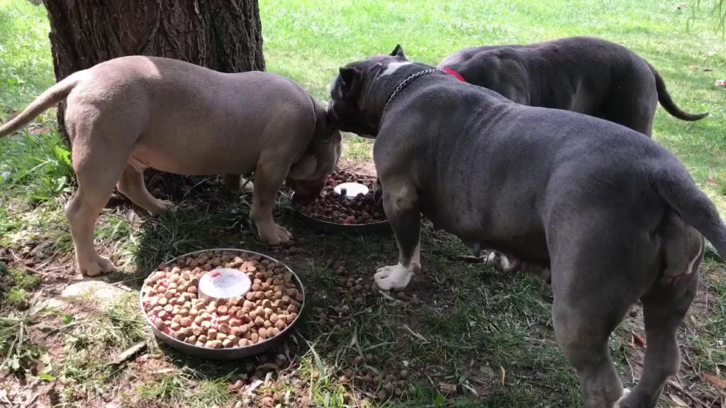 Кормление американского булли мало чем отличается от других собак — за основу рациона можно взять как сухой корм, так и натуральную пищу.