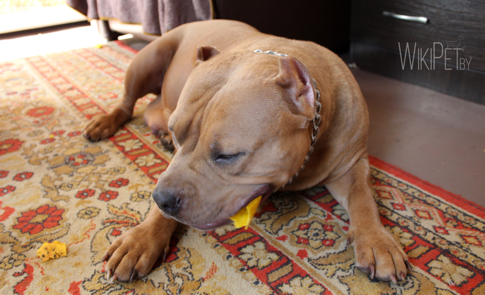 Следует купить щенку американского булли лоток, в который он будет справлять нужду. На момент приучения к лотку рекомендуется расстелить в разных местах дома клеенки.