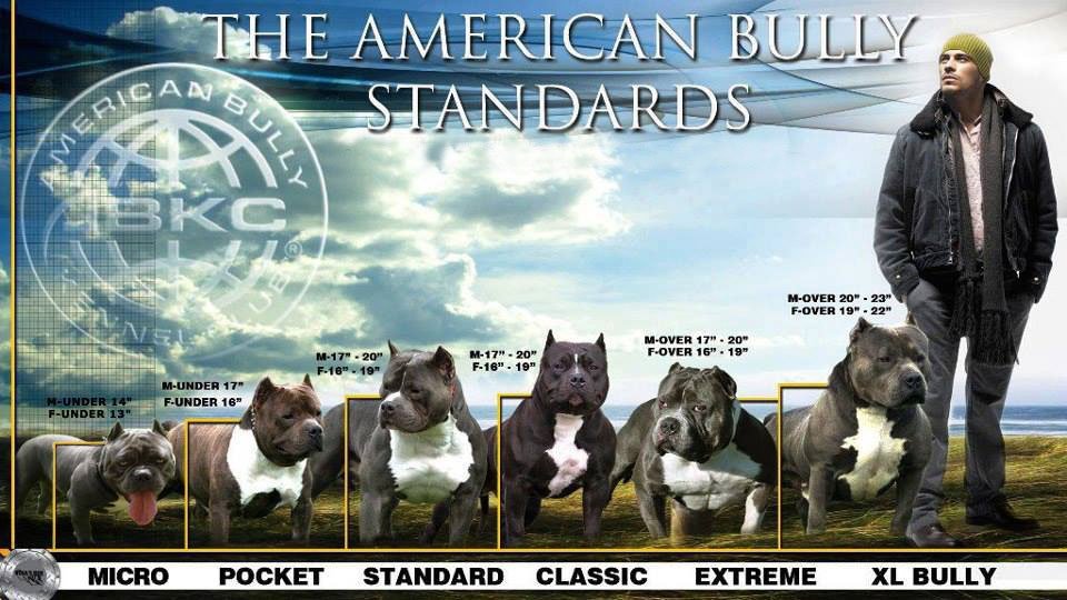 Размеры булли: карманные, стандартные, классические и XL