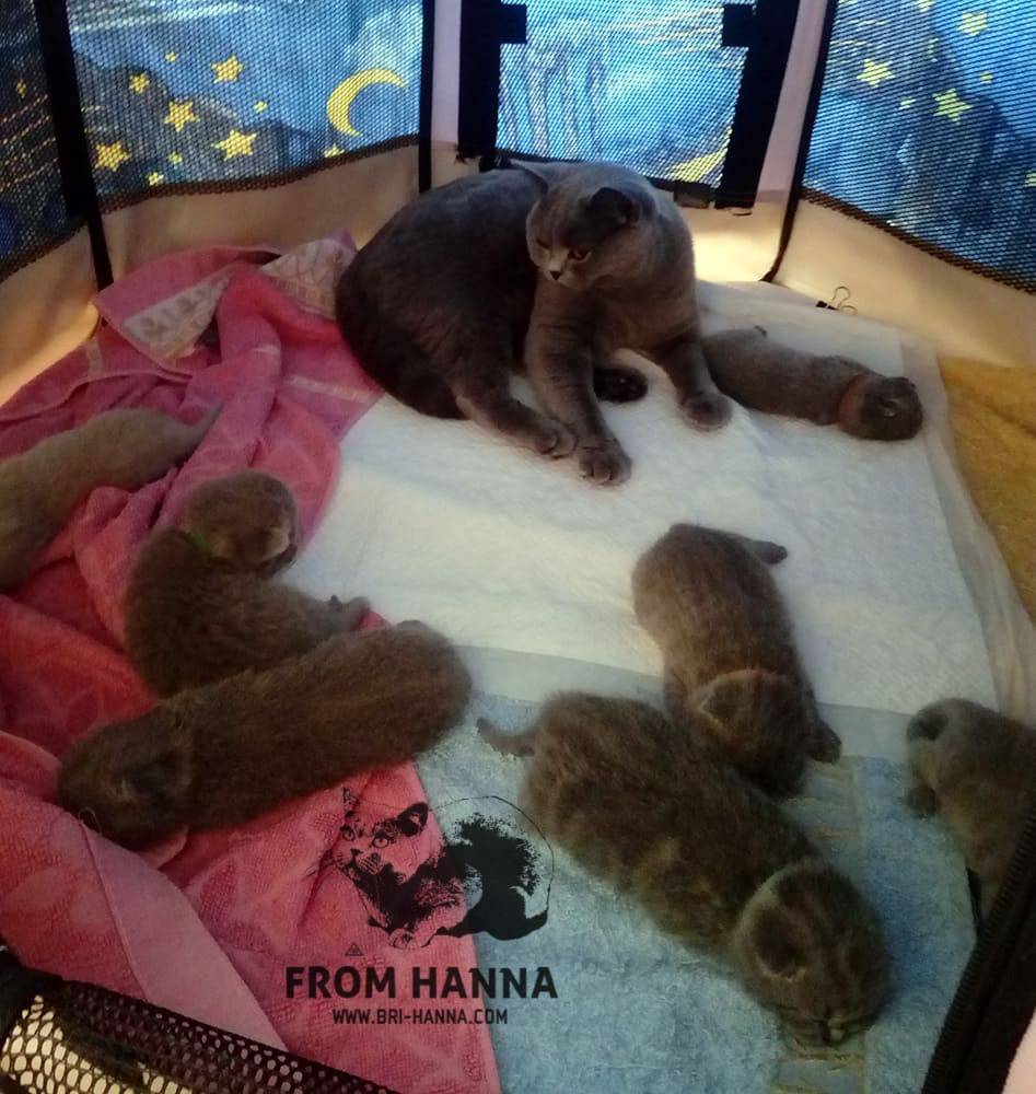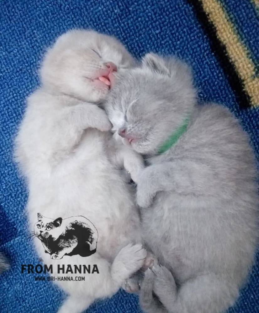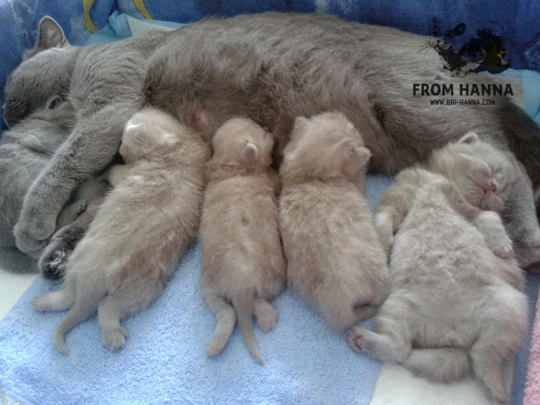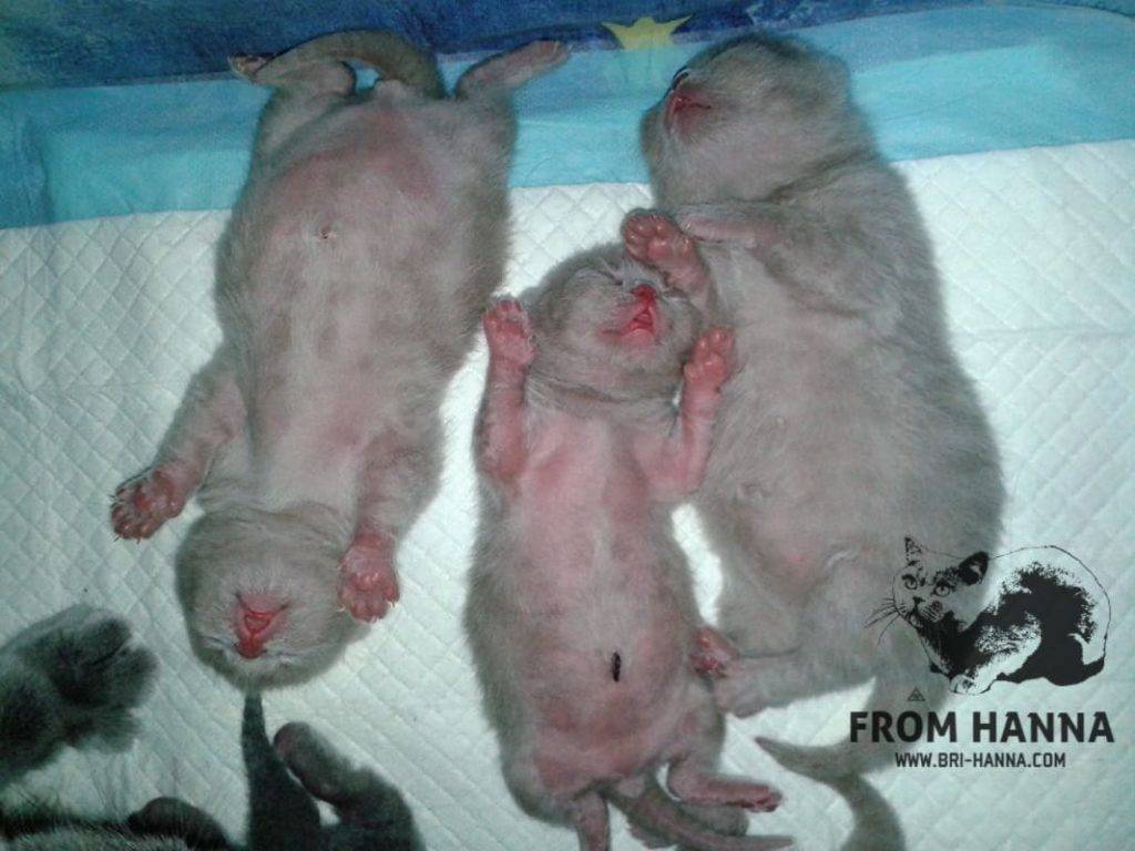 Британцы рождаются слепыми, глухими, с большими когтями, без подшёрстка, шерсть не способна согревать малыша, поэтому нужно следить за температурой «родилки» ≈ 38 – 39 С⁰. Возраст, когда котята 95 % времени спят, врожденное обоняние и осязание позволяет находить кормящий сосок кошки. Мать-британка вылизывает котят, без нее они не способны испражняться. В период с рождения и до 2 – 3 недель следует следить за ежедневной прибавкой в весе малюток по 10 – 20 гр., взвешивать нужно утром в одно и то же время. Если кто-то не доедает, то подкладывайте его к соску чаще.