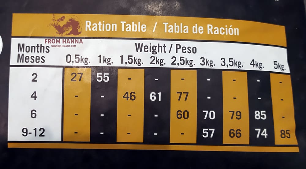 Готовыми сухими кормами и консервами следует кормить согласно нормам от производителя, которые указываются на упаковке