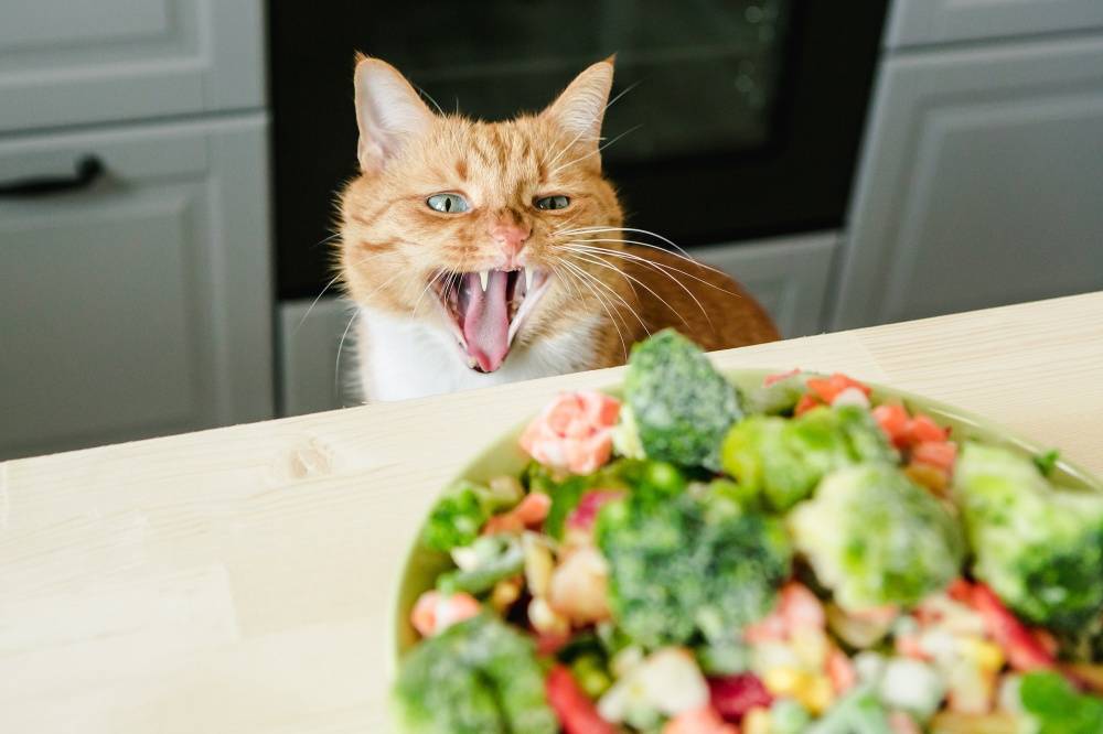 Также, при натуральном питании в рацион обязательно следует вводить небольшое количество овощей. Например, можно использовать капусту, кабачок или тыкву. Редко какая кошка станет есть их самостоятельно. Поэтому из овощей готовят пюре, которое примешивают к мясному фаршу.