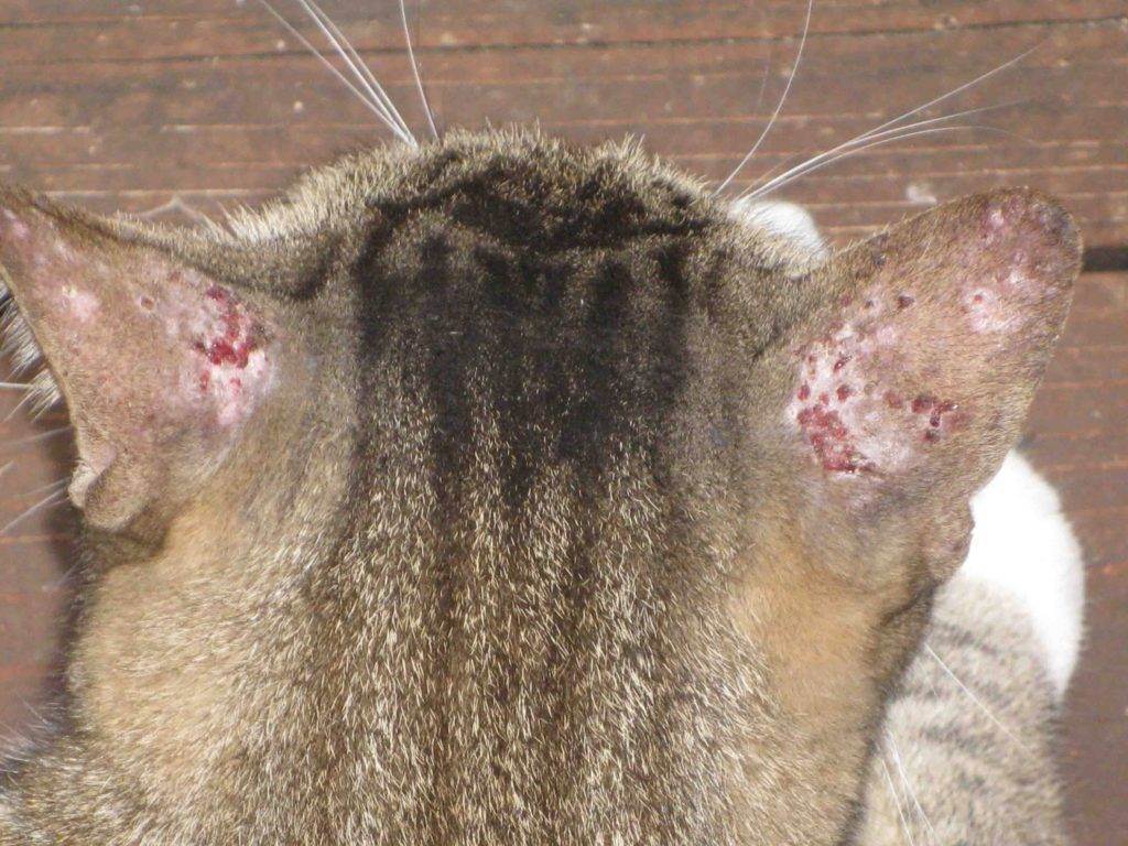 При атопии сначала становится сухой кожа, появляется сильный зуд, изнуряющий питомца. В местах расчесов раны даже переходят в мокрые язвы, осложненные инфекциями. Спровоцировать аллергию может любой фактор – новый продукт, какая-то трава, порошок, которым была постирана подстилка. Излечить болезнь нельзя, но следует облегчать котику симптомы, снимать препаратами зуд, наносить мазь на раны.