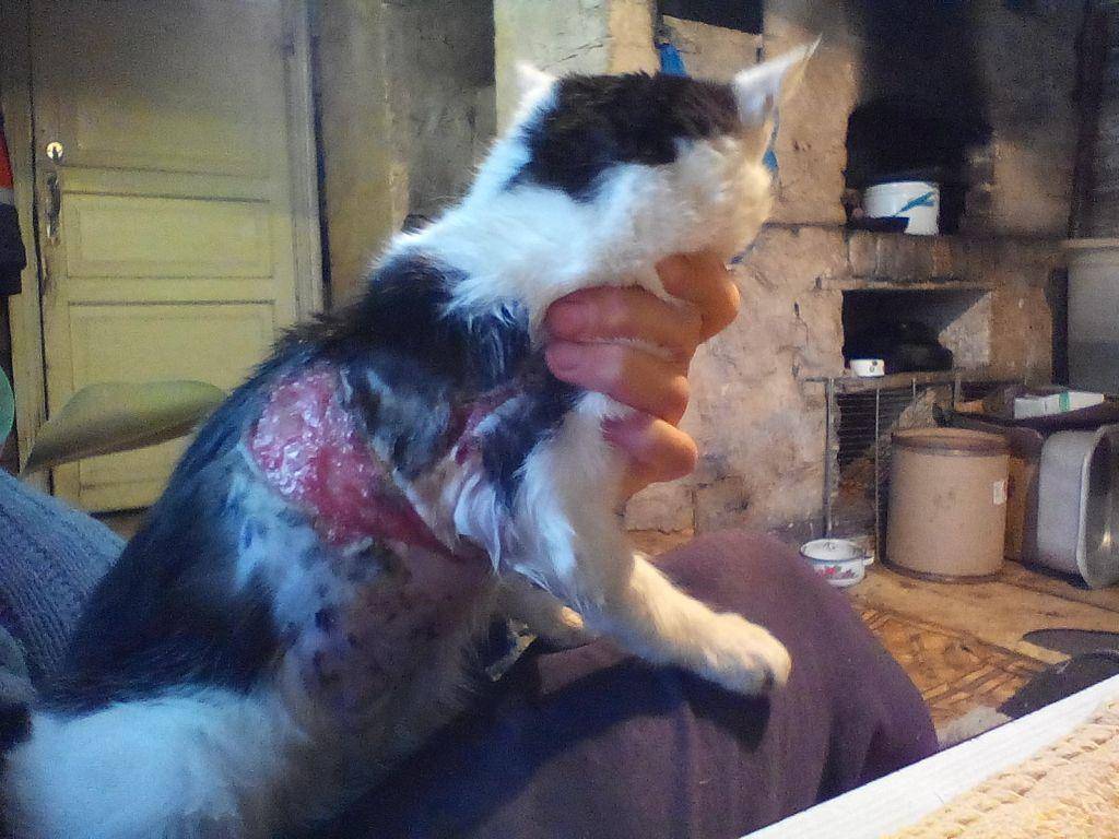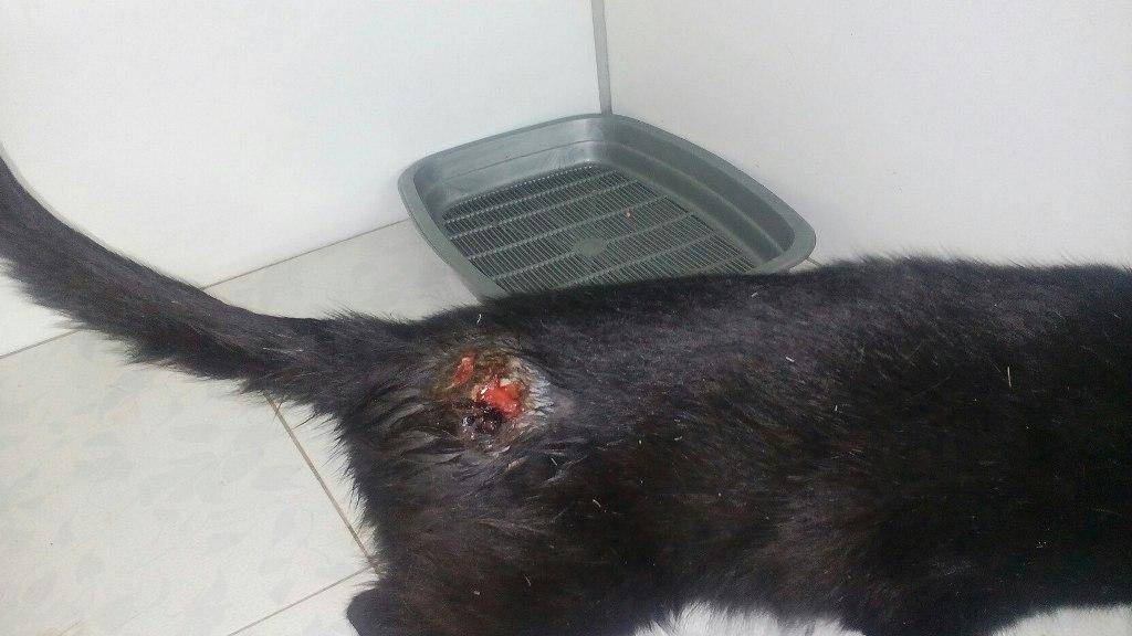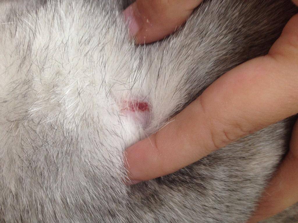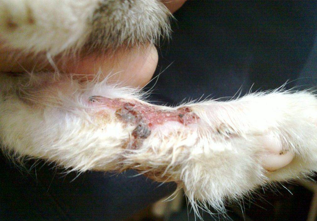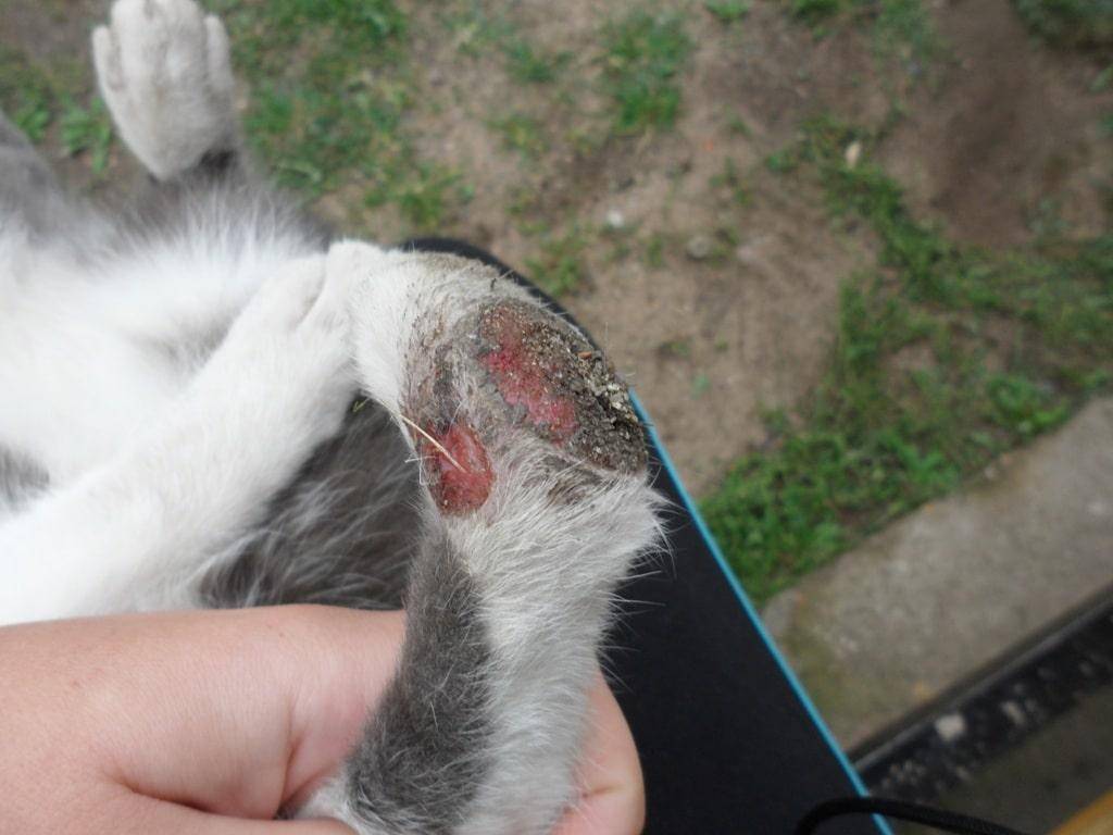 На доступных местах (ухо, нос, спина) заметить наличие ран гораздо легче, чем например, на животе или лапах.