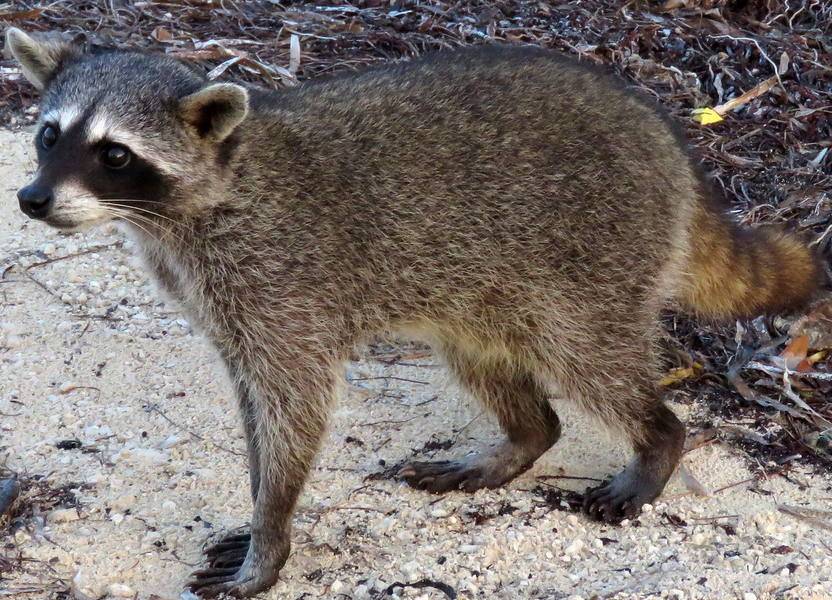 - еноты имеют пушистый длинный хвост с чередующимися светлыми и темными поперечными полосами;