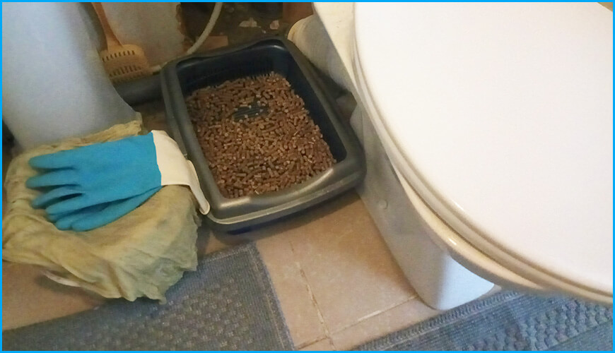 Использованный силикагелевый наполнитель нельзя смывать в унитаз. Синтетическая смесь может забить просвет канализационных труб.