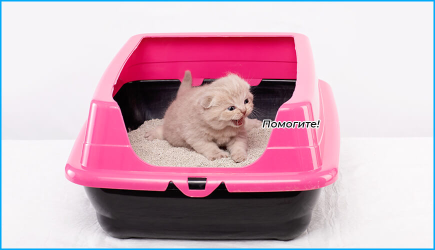 - котенку с трудом удается забраться в лоток или выбрать из него;