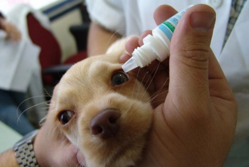 Чтобы при попадании в глаз лекарство не вытекало, необходимо зафиксировать голову животного руками, слегка её приподняв.