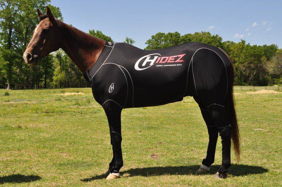 Так вот. Компания Hidez удивилась, почему же никто в этом ключе о лошадях на скачках не подумал? Ведь они тоже спортсмены, которые надрываются, чтобы победить. И выпустила специальные костюмы именно для лошадей.
