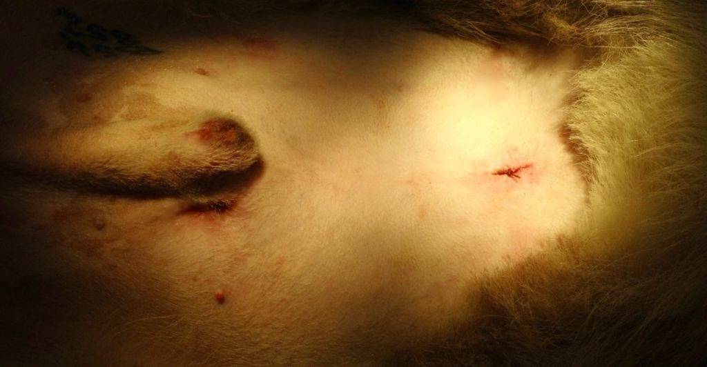 На время послеоперационной реабилитации питомца можно оставить в стационаре, но в большинстве случаев это не требуется. После операции необходимо обрабатывать швы 1-2 раза в сутки на протяжении 10-14 дней. Используются различные антисептические растворы, мази или спреи, которые назначаются врачом для каждого конкретного случая.