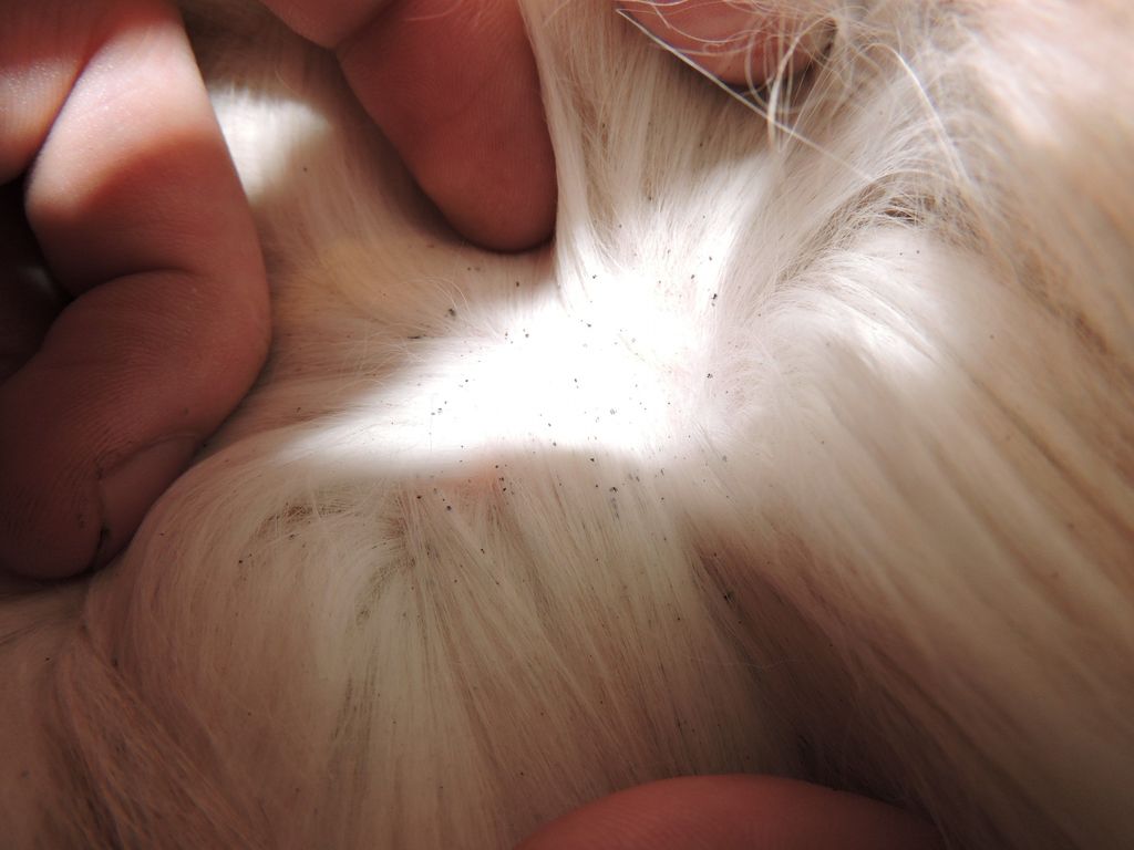 Начинают обрабатывать питомца с головы, дальше переходя по всему телу, уделяя особое внимание местам, куда чаще всего прячутся наружные «нахлебники»