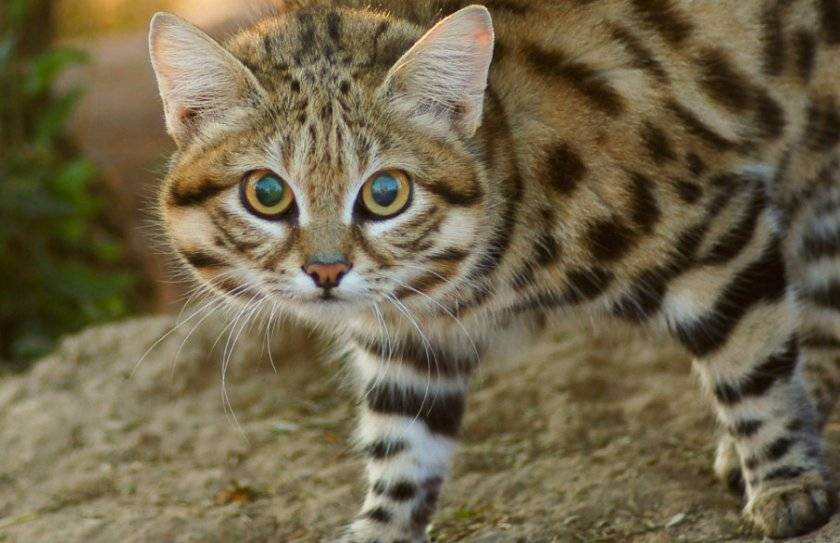 Перейдем к обобщению характеристики африканской черноногой кошки. И начать стоит с характера: агрессивный, активность присуща в ночное время суток. Днем отдых и уход за шестью. Масса тела максимально достигает 2 кг у взрослых самцов, а девочки меньше на полкило.