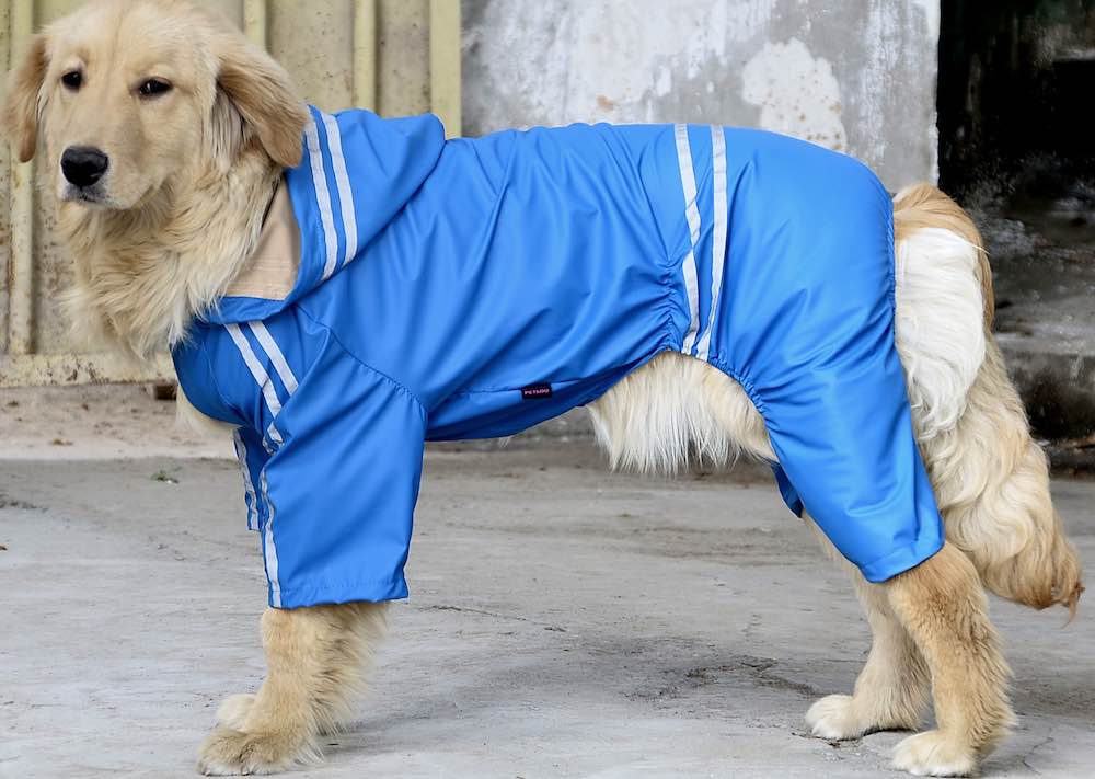 При дождливой погоде подберите питомце специальный дождевик или непромокаемую одежду, чтобы шерсть не намокла и не свалялась. Так проще и для вас и для собаки.