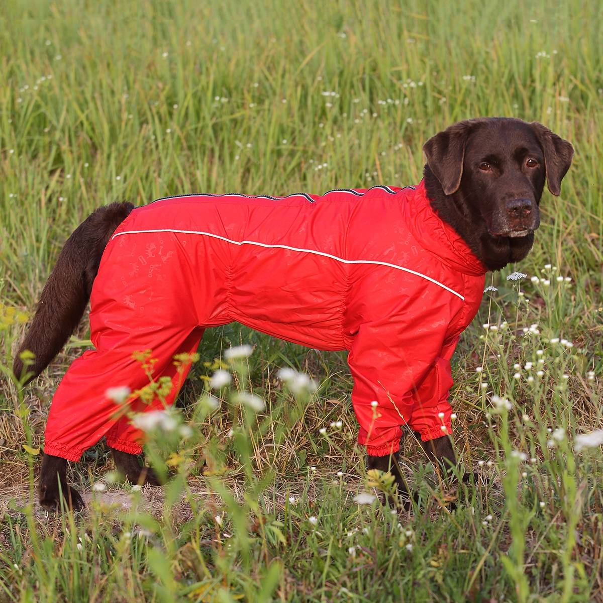 Основное предназначение одежды — польза и защита питомца от непогоды, поэтому обратите внимание, чтобы комбинезон закрывал грудь, поясницу, область, где находятся почки, детородные органы, лимфатические узлы, молочные железы. Собаке должно быть удобно при прогулке, одежда не должна сдавливать или натирать