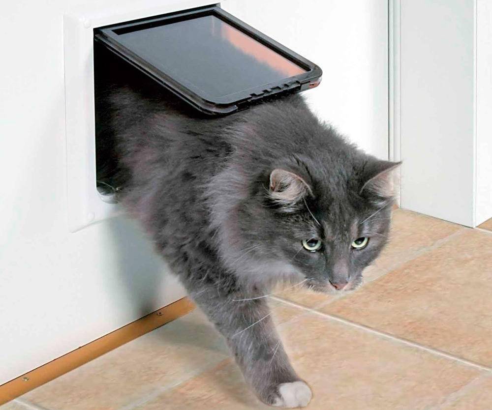 Дверца для кошек может закрывать не только лаз на улицу, но и отверстие в межкомнатных дверях. Она дает питомцу возможность выходить на улицу или перемещаться из одного помещения в другое внутри жилища. Внешне выглядит, как небольшое отверстие с закрывающейся створкой. Основная функция входных дверей для кошек — обеспечить свободное передвижение.