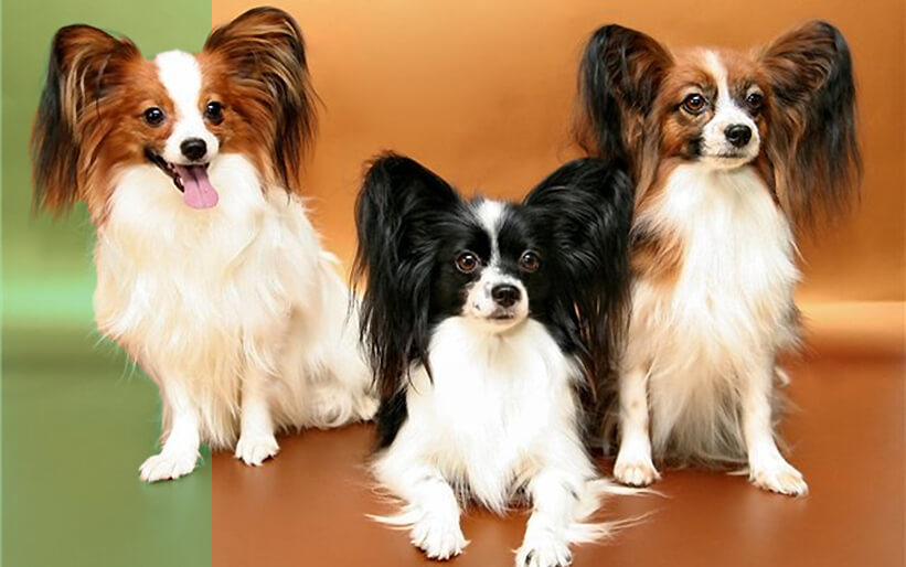 - Виды: папильон (что по-французски значит «бабочка») со стоячими ушками и фален («мотылек») — собака, у которой ушки висят.