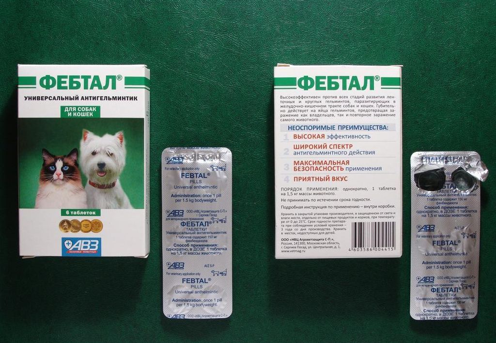 Фебтал относится к группе антигельминтных средств, выпускается в виде суспензии и таблеток. Таблетированная форма пакуется в блистер по 6 штук и картонную коробку.