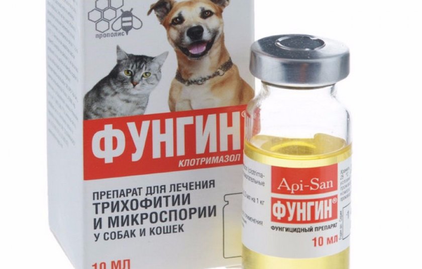 Раствор фунгина форте наносится на пораженное место с помощью предварительно смоченного ватного тампона из расчета 0,2-0,3 мл жидкости на 1 кг живого веса домашнего питомца.