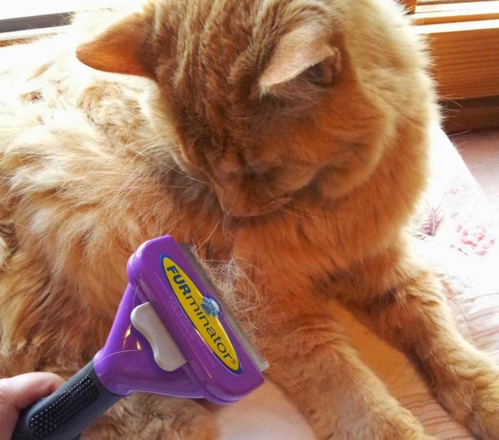 ПодготовитьКота желательно искупать, высушить и причесать. Фурминатор не подходит для удаления колтунов — их нужно распутать или выстричь заранее. Для удобства вычёсывания питомца лучше уложить набок — но только если его не нервирует такое положение.
