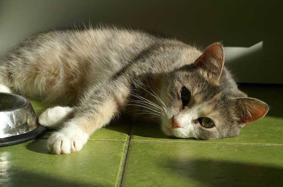Обратите внимание! При прощупывании брюшной области кошки испытывают болевые ощущения: беспокоятся, стонут, громко мяукают. Владельцы сразу заметят изменения в поведении питомца: он становится очень вялым и апатичным, практически не двигается, перестает играть и бегать. Больше лежит, отдыхает и спит