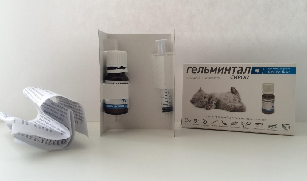| Гельминтал | Сироп | Моксидектин, празиквантел | Серьезные проблемы с почками и печенью, инфицирование, истощение, вес менее 500 г |