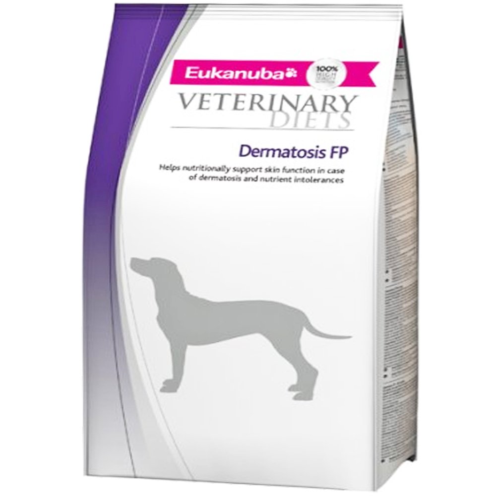 Eukanuba Dermatosis FP Responce является лечебным питанием, который предотвращает появление аллергической реакции. При изготовлении продукта использовалась сельдь, мясо сома, картофель, животные жиры, свекла.