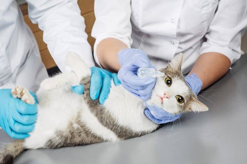 Пока один человек удерживает животное, второй проводит закапывание. Если кот категорически не дает капать глаза, следует проконсультироваться с ветеринаром, так как высока вероятность того, что питомец просто не переносит назначенный препарат.
