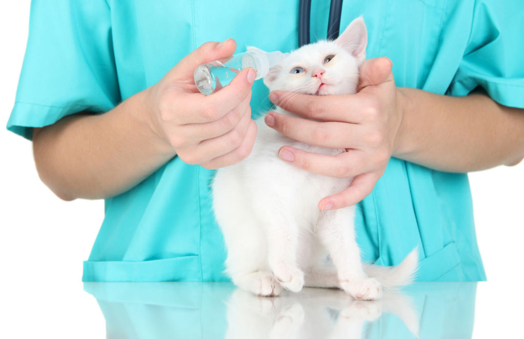 Нижнее веко немного оттягивают большим пальцем, зафиксировав голову кота, чтобы он не дёрнулся. Флакон держат на расстоянии 1 см от глазного яблока, капельница не должна касаться века. Вводят нужное количество раствора в образовавшийся карман. Далее то же самое проделывают со вторым глазом.