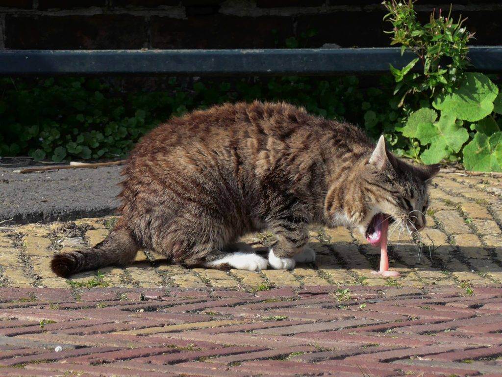 Важно! Физиологическое явление не вызывает дополнительной симптоматики, кошка продолжает активно двигаться и спокойно есть. Возникает 1-2 раза и самостоятельно проходит