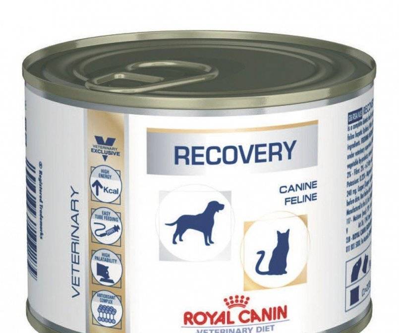 Сорт «Recovery canned» разработан для питания после операций или истощения. Назначает его только ветеринар, и порцию рассчитывает тоже врач. Консистенция данного продукта дает возможность кормить животное через зонд.