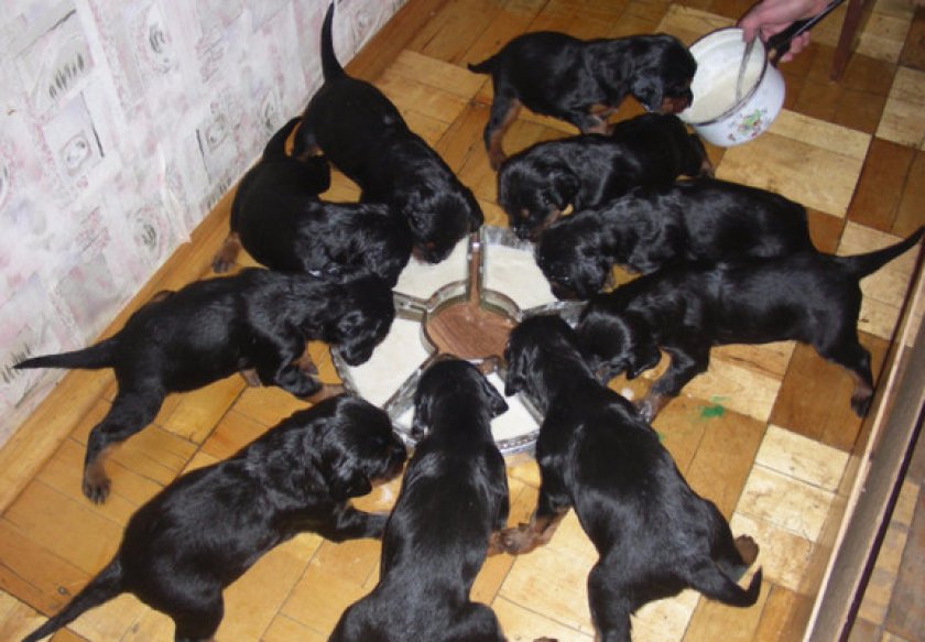 Обычно покупают корма, которыми щенок питался в питомнике. Если хочется кормить животное натуральной пищей, переход проводят постепенно. Вначале подкармливают продуктами, входящими в состав корма.